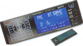 Новая однодиновая мультимедийная станция Challenger СН-8036 получила яркую, запоминающуюся внешность. Ее дизайн приковывает к себе внимание с первого взгляда. Аппарат обязательно станет центром притяжения на торпедо любого автомобиля. Головное устройство представляет собой DVD-ресивер со встроенным широкоформатным ЖК-экраном с диагональю 3,6 дюйма. Стандартный набор из дискового плеера и радиоприемника расширен за счет встроенного SD/MMC-кард-ридера и порта mini-USB, которые расположены на передней панели устройства. Так что если вам захочется послушать в автомобиле музыку или посмотреть видео, которые хранятся у вас в мобильнике, КПК или на портативном плеере, то никакой проблемы это не составит. Также есть возможность подключить к этой станции плеер iPod, однако для этого необходимо приобрести дополнительный соединительный кабель. Передняя панель устройства снабжена электроприводом. Угол ее наклона может быть выбран из четырех вариантов. Выбранное положение запоминается системой, и при повторном включении аппарата передняя панель снова принимает необходимый угол наклона. При управлении устройством в автомобиле не исключена возможность ошибочного нажатия на клавиши управления на лицевой панели устройства. Дело в том, что стильные плоские клавиши отлично выглядят, но не очень хорошо различимы на ощупь. Однако после непродолжительного привыкания все становится на свои места. И тут стоит отметить четкость нажатия кнопок и неплохо продуманную схему их размещения. Разве что клавиши „перемотки" было бы логичнее разместить симметрично относительно оси клавиатуры. Однако настоящей ложкой дегтя в эргономике устройства стал пульт ДУ. Полноценно общаться с ним можно только при свете. Причина в том, что запомнить на ощупь расположение хотя бы основных функциональных клавиш довольно затруднительно. Основная их масса расположена среди одинаковых круглых кнопочек. Функциональные зоны выделены только с помощью невнятного цветового подкрашивания группы кнопок.
